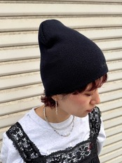HOLIDAYロゴ刺繍入りのアクリル素材のビーニー。