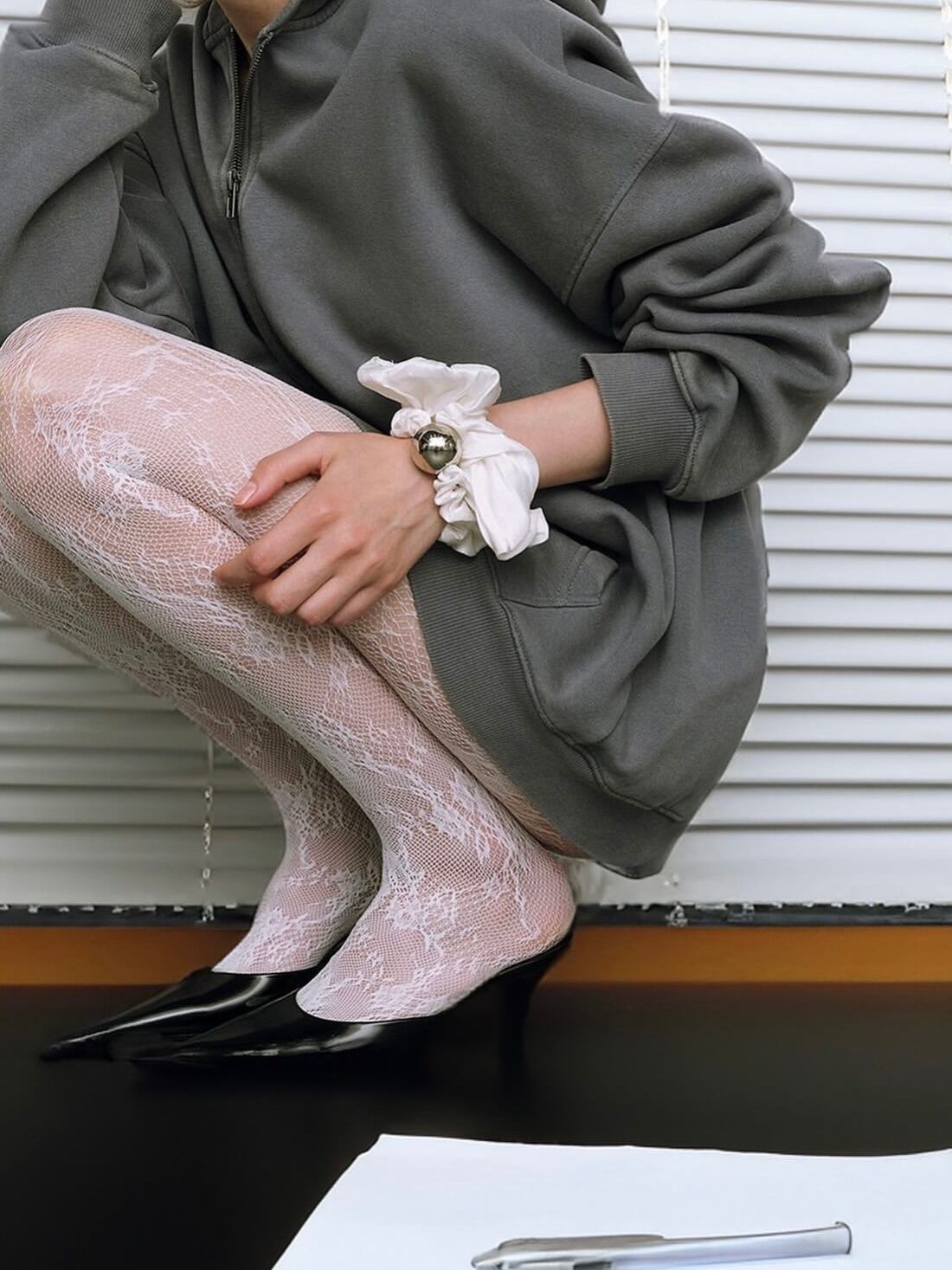 シュシュ本体は柔らかくしなやかなシルクを使用し、髪をしっかりとホールドしながらも快適な装着感