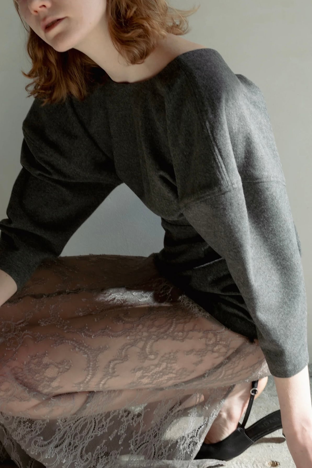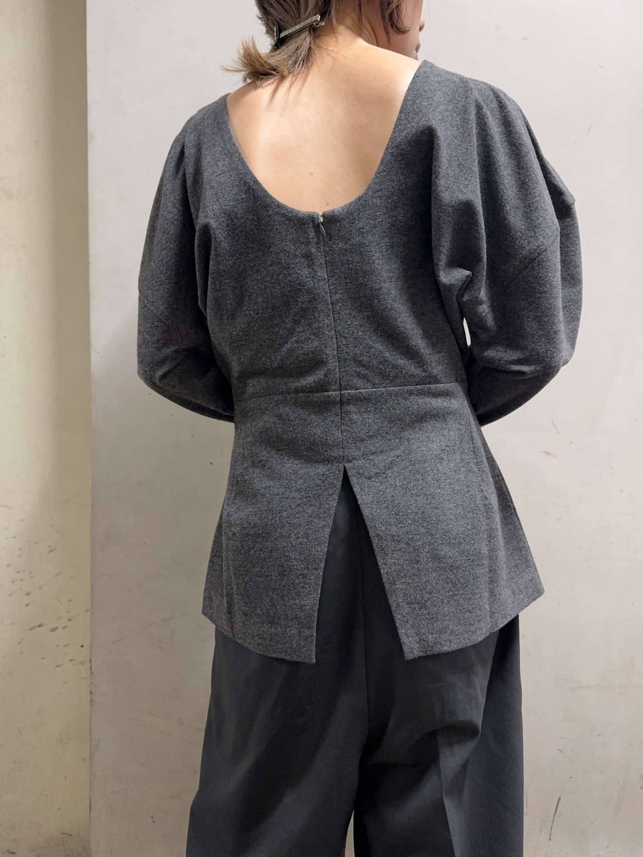 ベルベットのような繊細で滑らかなな起毛を施したTRを使用したパフスリーブトップス。