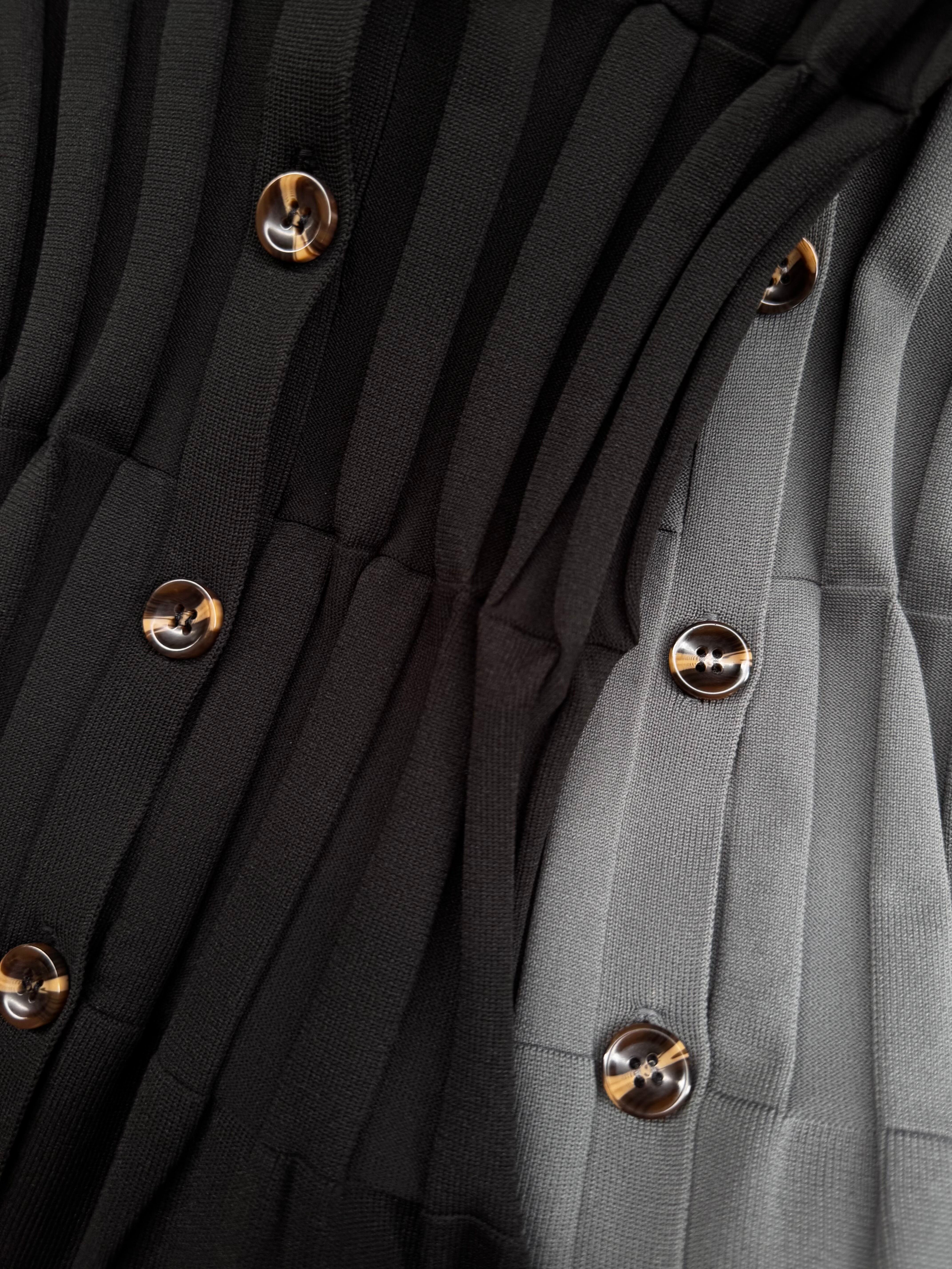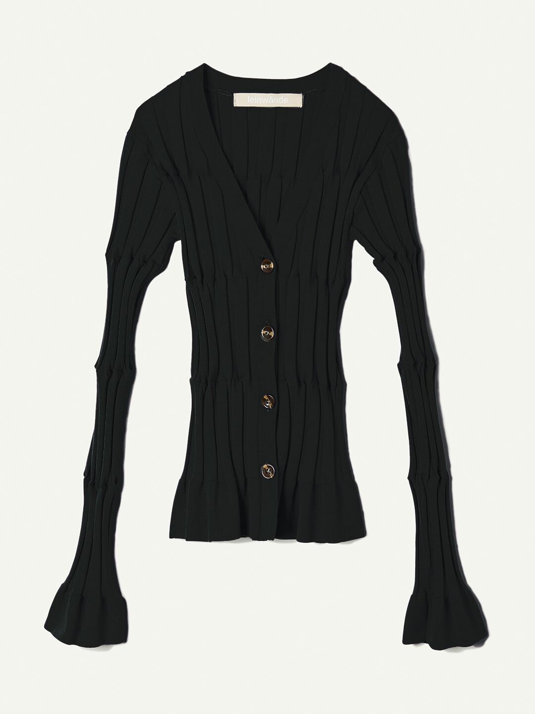 格子状に切り替えながらリブで編み立てることで、ユニークなねじれとフィット感を持ち合わせたコンシャスなニットカーディガン。