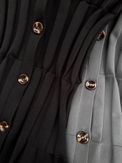 キュッと縮まるデザインを活かし、袖口と裾にはフリルのような広がりを加えています。
