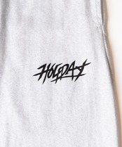 ヴィンテージのような風合いを出すため細部までこだわったダメージ加工を施しています。サイドポケット付き。ロゴプリント入り。