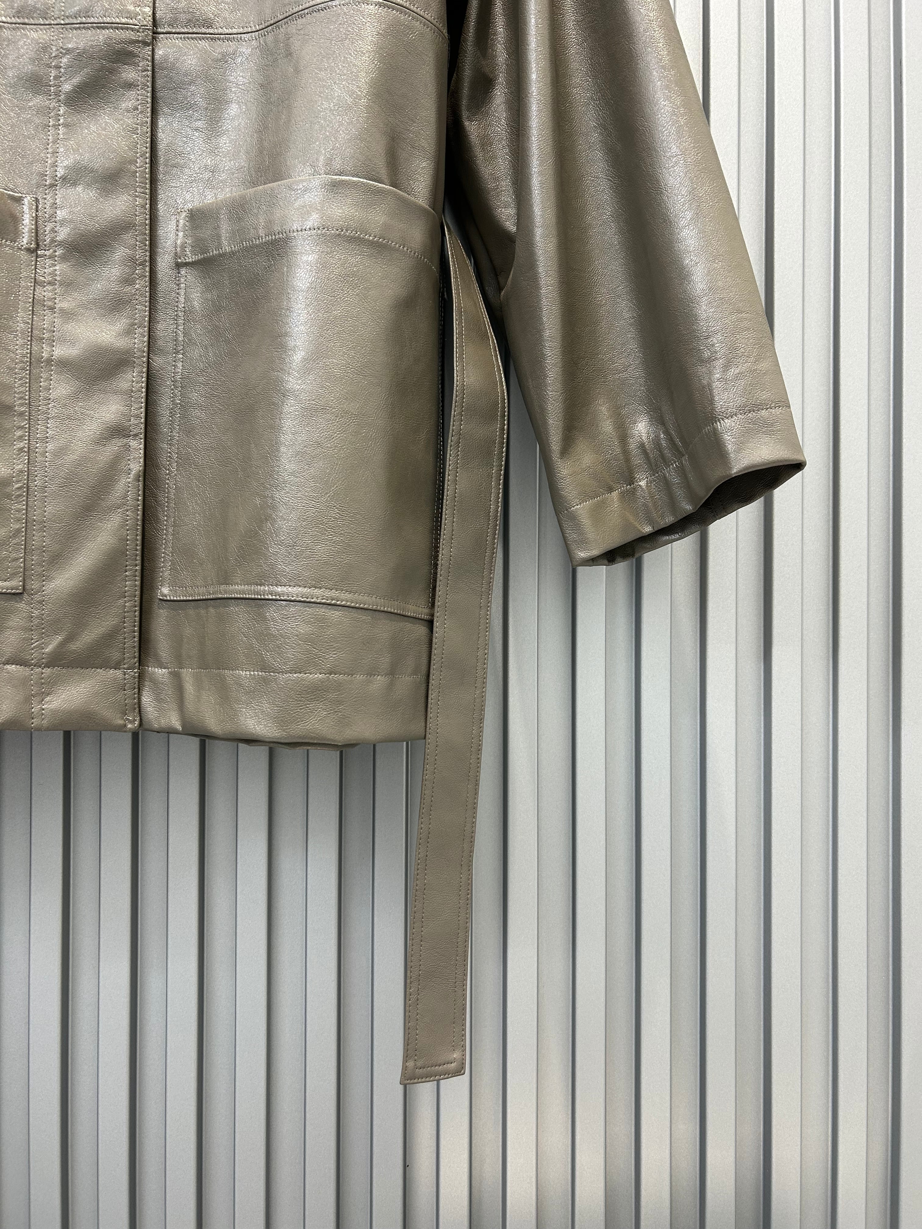 Little$uzie/Vegan Leather Belted Jacket(Clay)