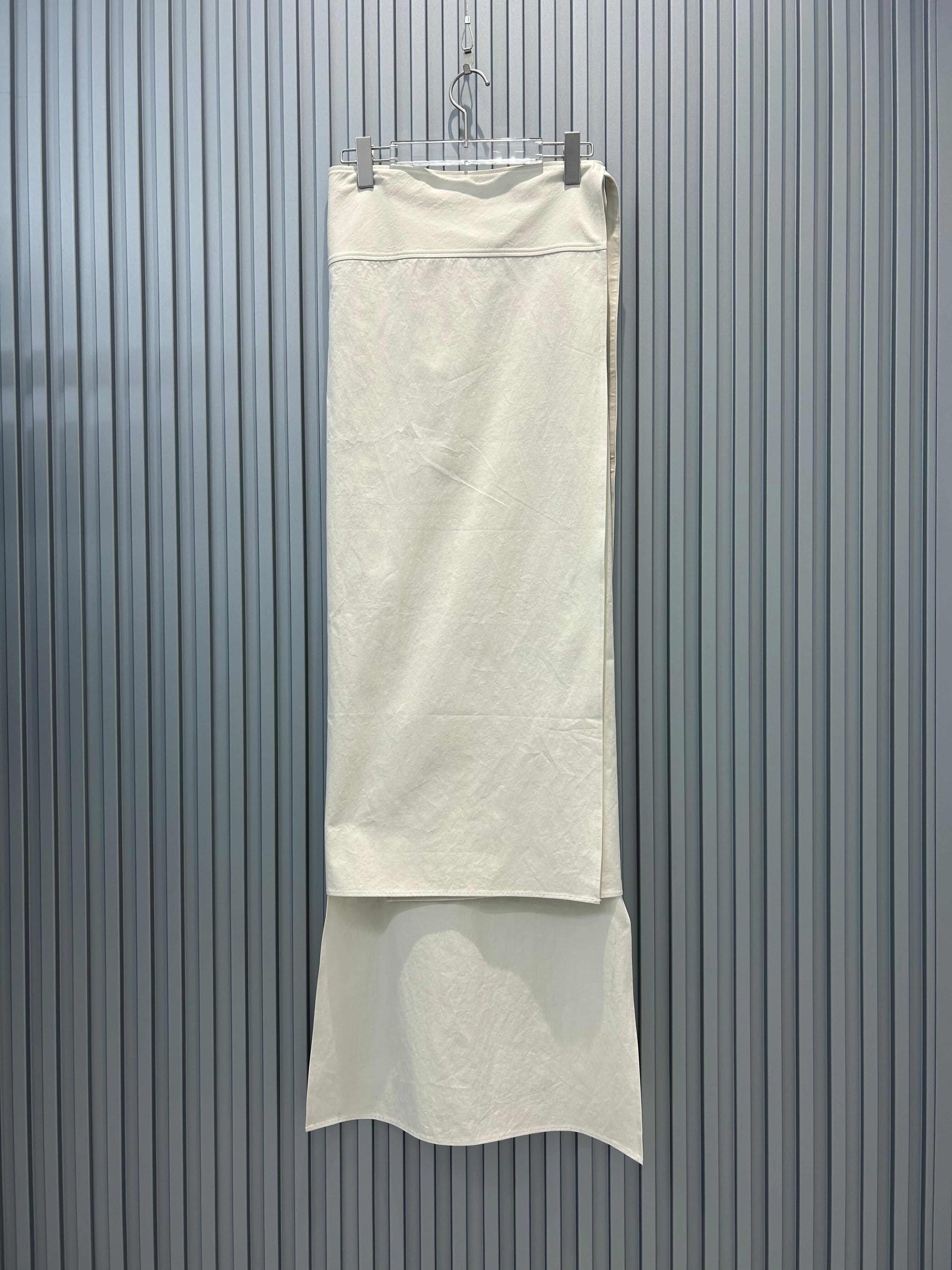 前身頃とセパレートの巻きスカートが肩紐で繋がっており、体に巻き付けて着用していただくアイテムです。