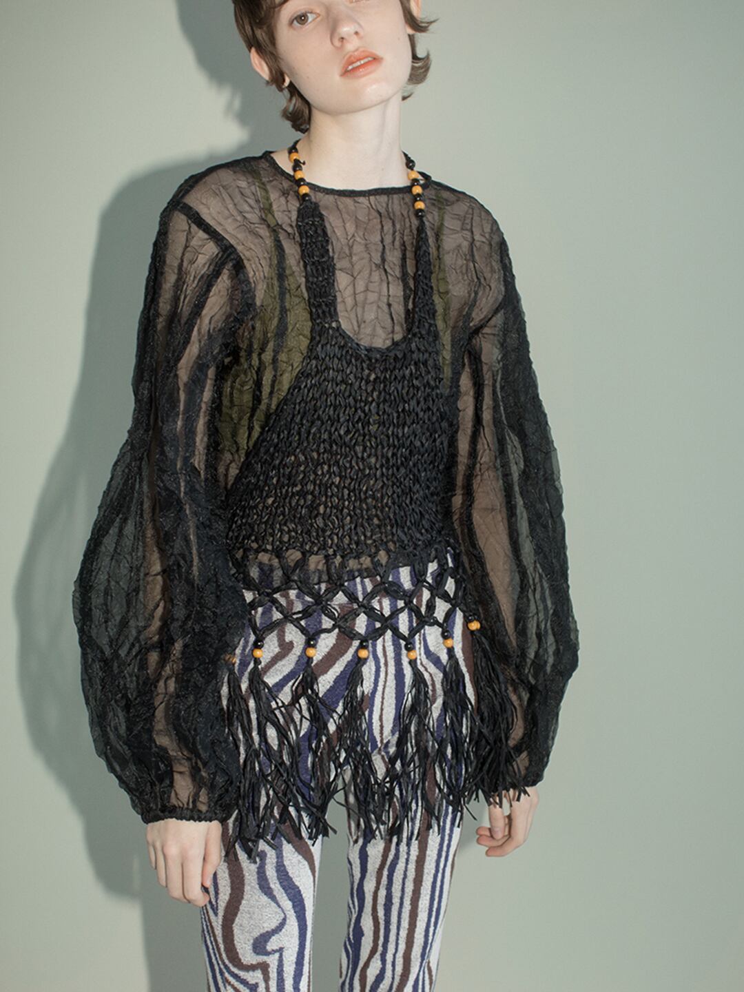 Leinwande/Recycle Organdy Pleats Top(Black)