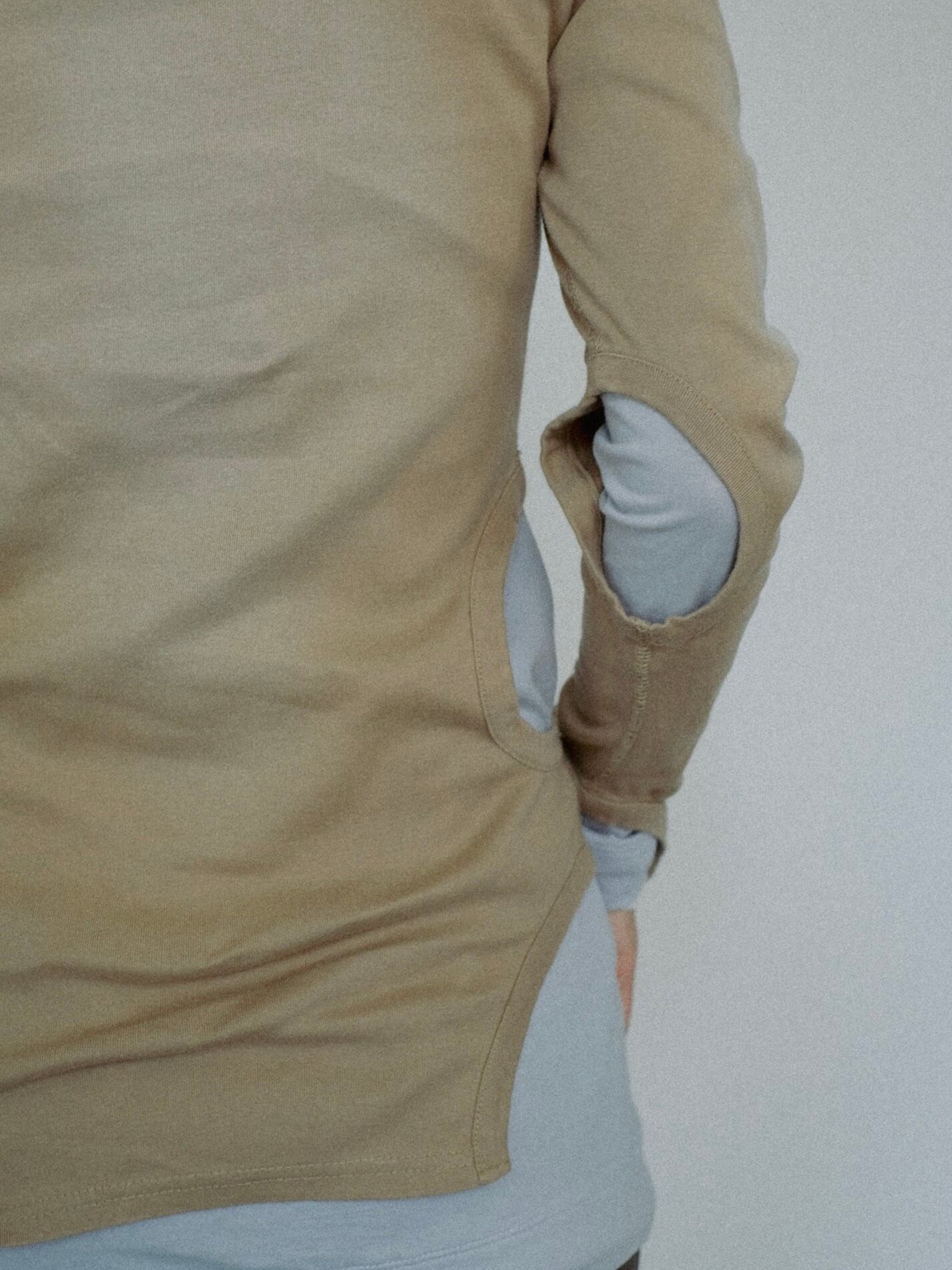 ハイゲージのオーガニックフライスを使用したカットアウトロングスリーブT。