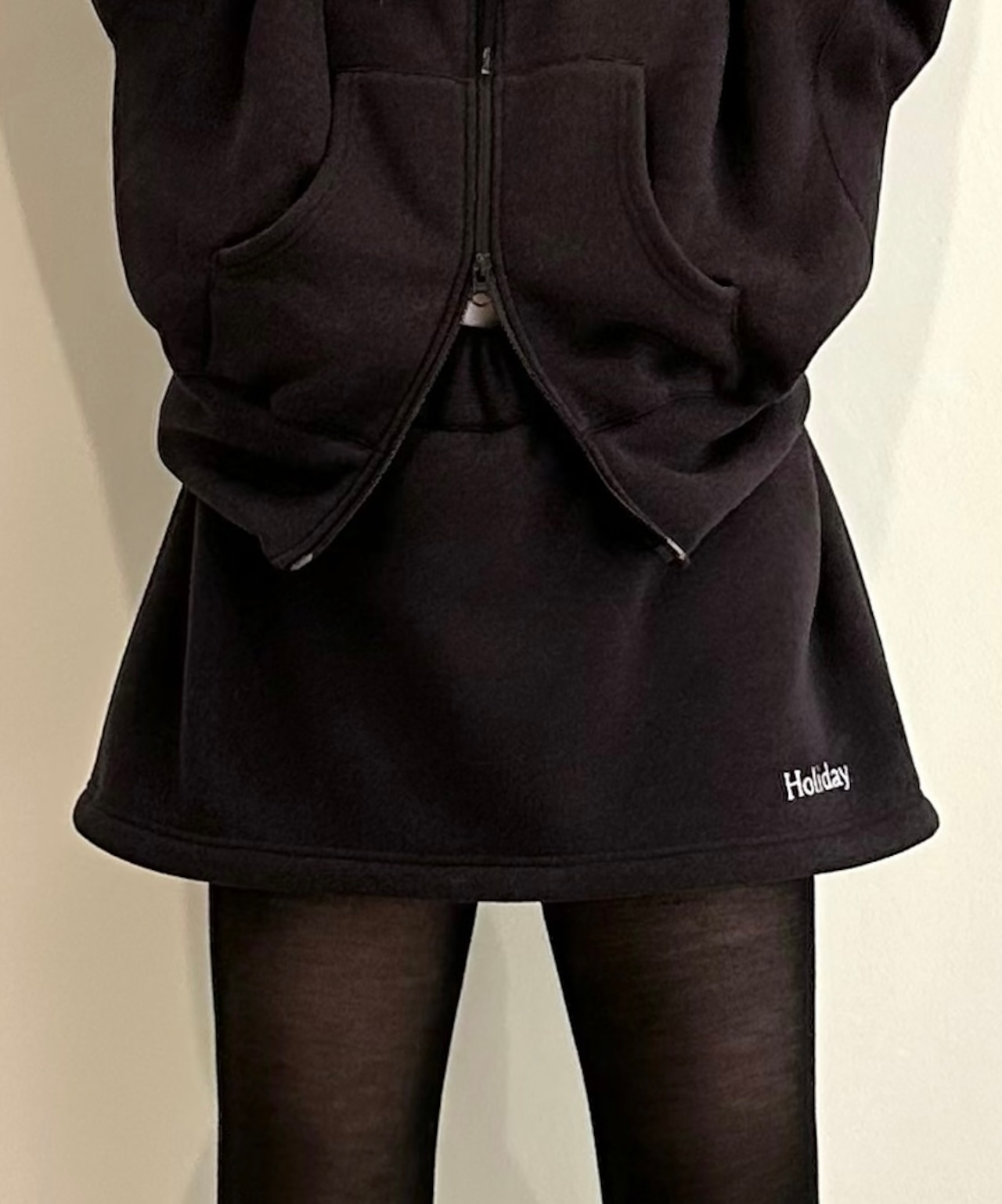 HOLIDAY/THERMAL PRO FLEECE TUCK MINI SKIRT(Black)