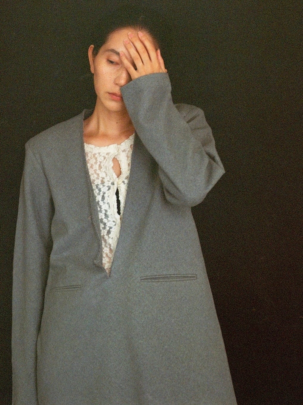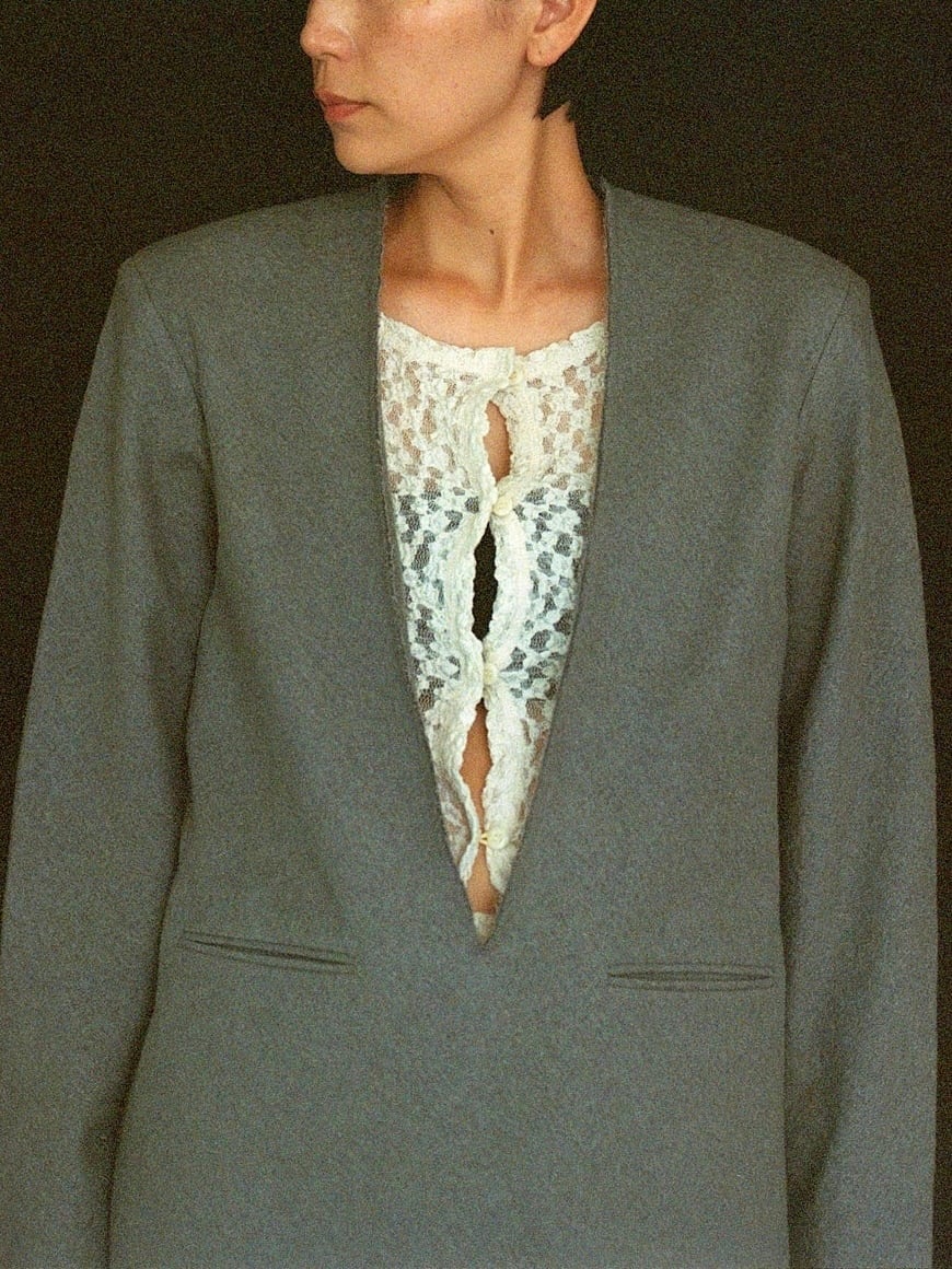 深いVのカットを立ち切りにし、ナチュラルでモード感のある1枚。