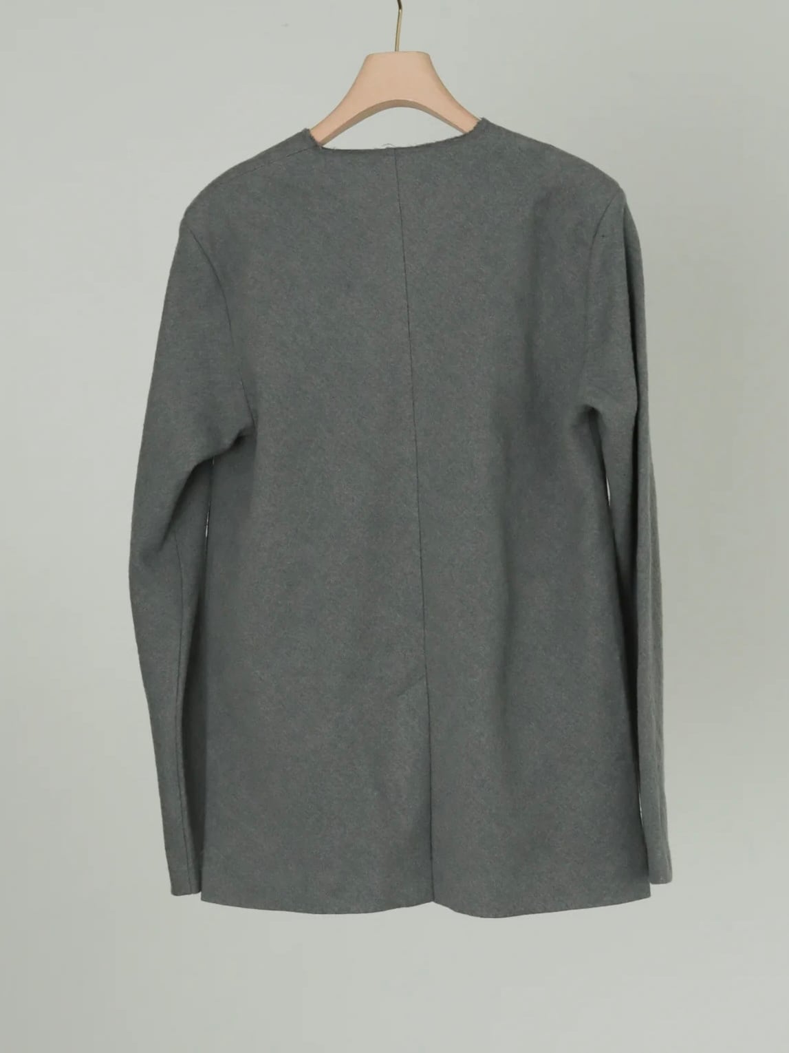毛羽感のあるコットンウールミックスのクレープ地をバイヤスに使用したプルオーバージャケット。